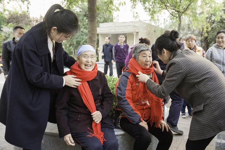 社区工作人员为辖区高龄老人戴上了温馨喜气的红围巾,老人动情地说“围巾暖心,这个冬天不怕冷”。一条条围巾包含着社区对辖区老人的关心和关爱,一句句祝福尽显社区对老人们的深情厚谊。