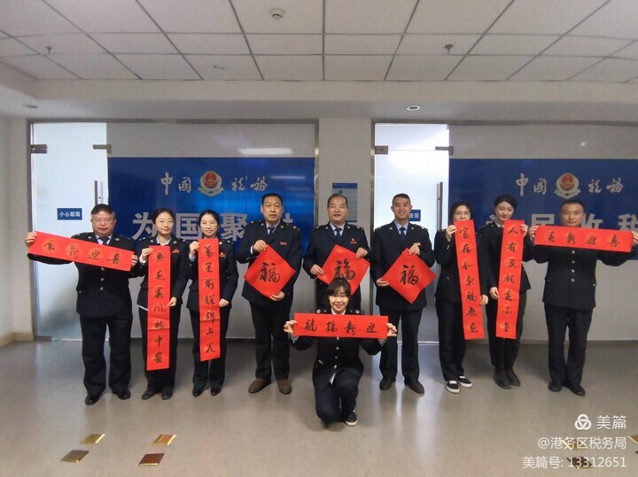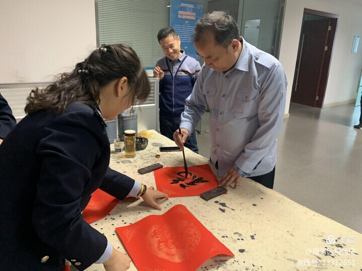 迎新春,贴对联,是迎接新年不可或缺的一道风景。2月1日,为学习贯彻党的十九届五中全会精神,弘扬中华民族传统文化,港务区税务局开展写春联送祝福活动。