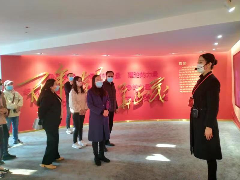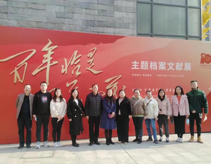 11月19日下午,未央区总工会副主席殷新萍带领全体机关干部到灞桥区九方无限现代艺术馆参观了“百年恰是风华正茂主题档案文献展”。