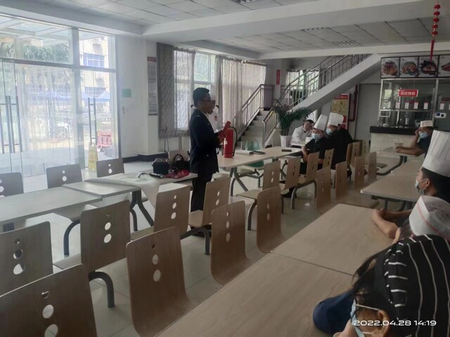 为切实做好工会医院餐饮消防及安全生产的工作,提高工会医院餐饮食堂职工的消防意识和消防“四个能力”, 4月28日(周四)下午,建强公司餐饮服务管理办公室在工会医院餐厅组织开展了消防安全生产培训。建强公司餐饮管理办公室副主任齐朝辉及全体餐饮职工参加培训。