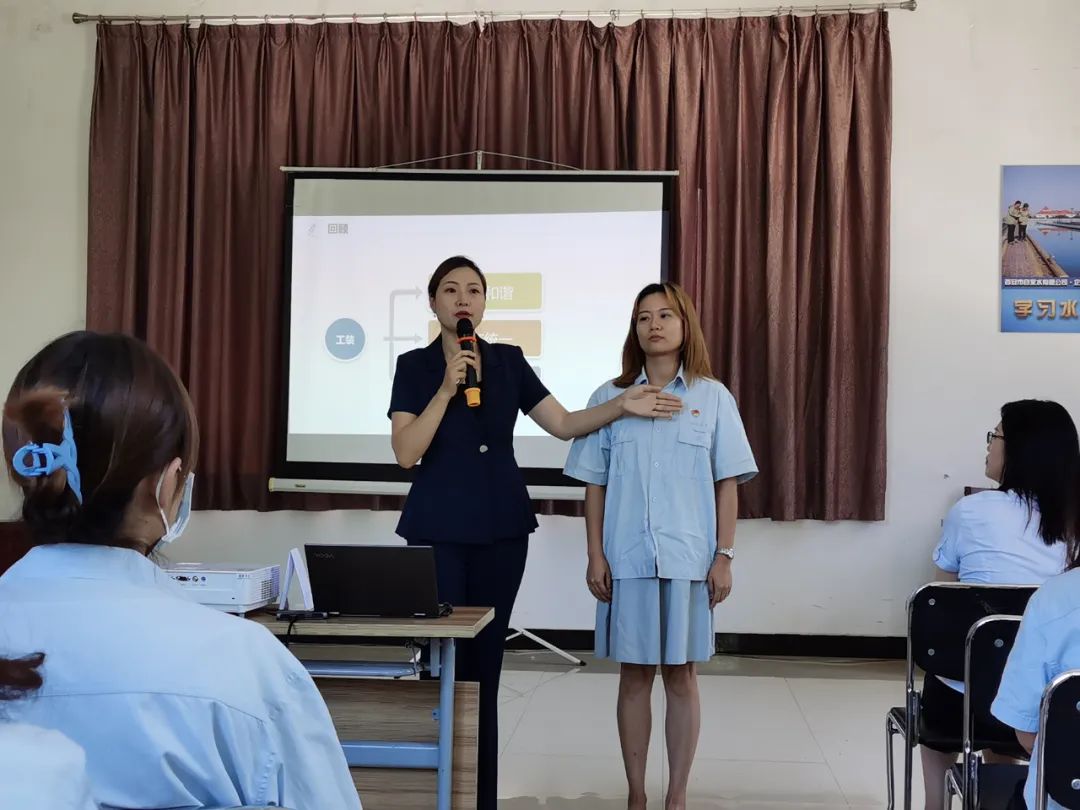 礼,内出于心,是内在的道理;仪,外显于形,是外在的呈现;礼仪是途径,和谐是结果! 7月20日下午,西安市职工大学、西安职教联合会、西安市总工会职工技术培训中心走进西安市自来水公司白鹿原水厂开展《政务接待礼仪》培训。由职教联合会师资库仲琪老师授课。一线职工30人参加培训。 仲老师用现场示范及实操演练的授课方式,从礼仪之敬、礼仪之美、礼仪之雅、礼仪之用等四方面讲述中国传统文化礼仪文明的思想、核心、规范操作等知识,大家学会如何塑造职业化形象美;如何灵活运用接待技巧;掌握张弛有度的仪态提升个人沟通能力。