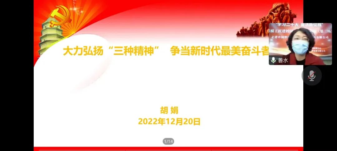 12月20日,劳模工匠进校园、进企业系列活动(第三场)走进中国铁路工会中车永济电机有限公司,活动采用线上会议形式,100余人参加。