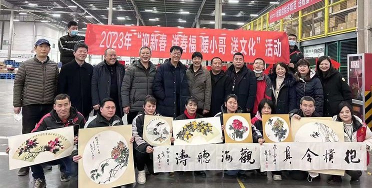 新春佳节即将来临,1月13日上午,西安职教联合会与西安市边家村文化宫走进会员单位——西安顺路物流有限公司沣东中转场开展“迎新春 送春福 暖小哥 送文化”活动。