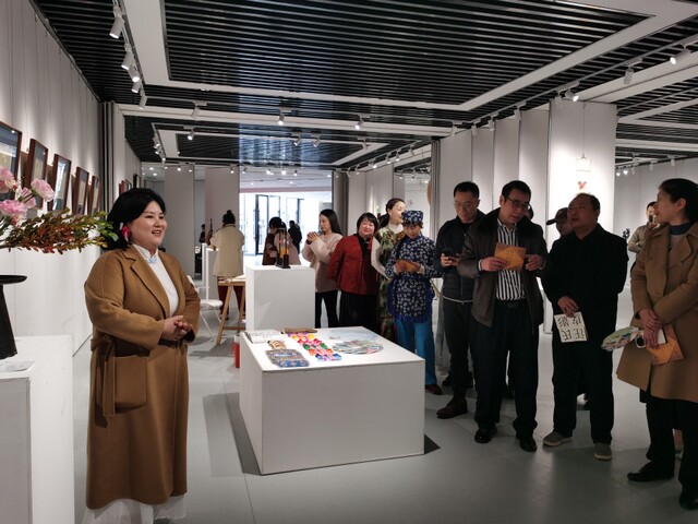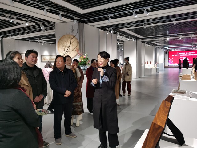 西安市边家村工人文化宫主任花爱武致开幕词。西安市工业和信息化局消费品工业处处长赵雨萧、西安市总工会宣传教育部副部长张媛、西安市工业和信息化局消费品处冯丽、陕西省妇女书画协会副会长陈亚梅、西安工艺美术学会会长李涧溪、西安市漆艺协会会长胡玉康、西安市工艺美术行业协会会长杨新军、西安工艺美术学会秘书长阮兰香、西安市边家村工人文化宫副主任李民鹏、西安市土门工人文化宫副主任闫觅以及省、市级工艺美术大师、工艺美术艺术爱好者百余人出席开幕式。