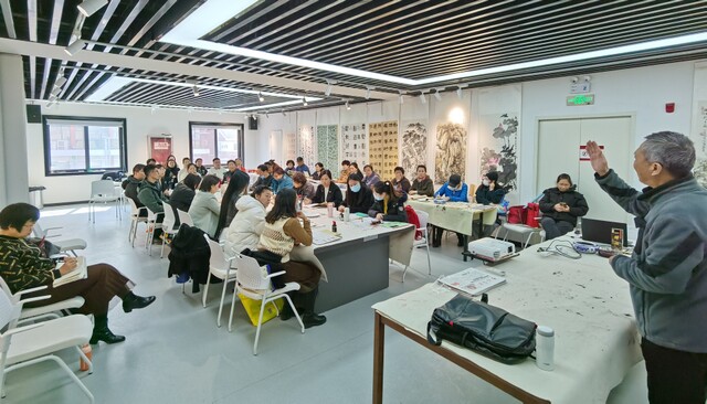 为丰富职工群众精神文化生活,提高职工群众艺术素养,传承感受中华传统文化魅力,3月9日、10日边家村文化宫2024年职工书画公益培训(花鸟画、书法、山水画)春季班第一讲在西安市职工文化艺术展示交流中心书画教室开课。百余名职工书画爱好者参加了学习。