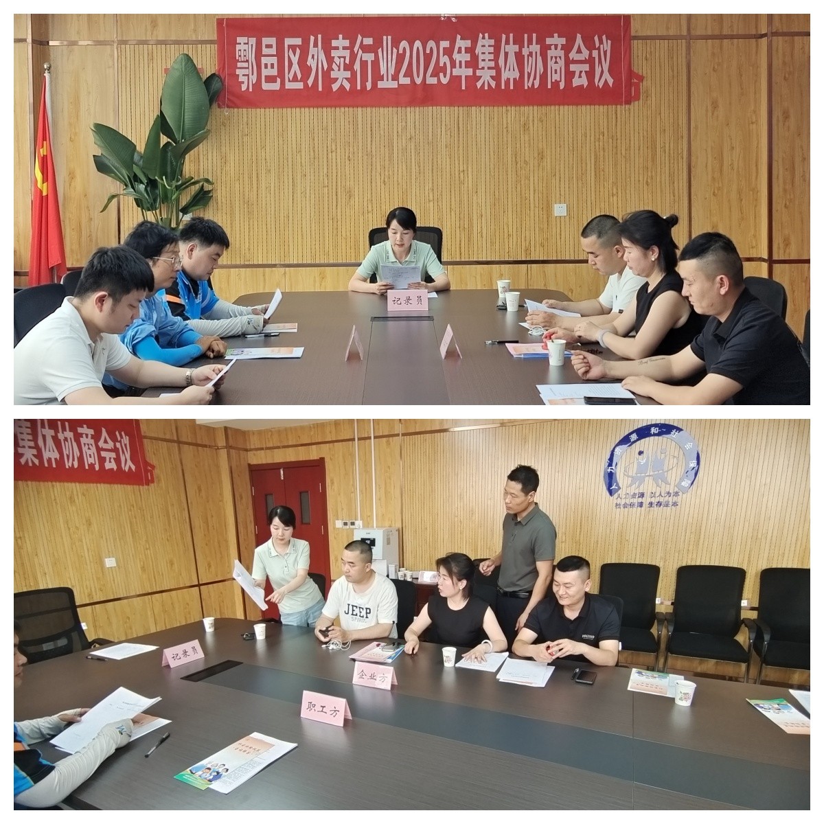 为进一步维护新就业形态劳动者劳动保障权益,促进平台经济规范健康持续发展,构建和谐劳动关系。5月15日,由区人社局、区总工会、外卖行业协会共同组织的外卖行业集体协商三方会议成功举行。签订的外卖行业集体合同覆盖了区域内美团和饿了么两个站点、260余名骑手,进一步规范了外卖行业用工制度,保障了外卖从业人员的合法权益。