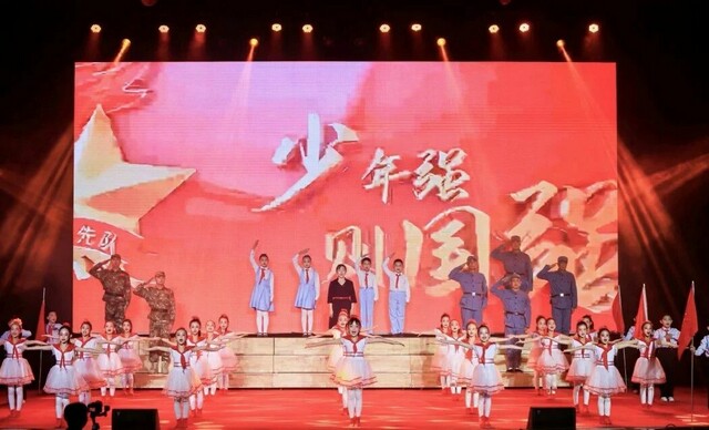 第四篇章《服务人民》深情礼赞党的根本宗旨。《人民的党》旋律优美、情感真挚,唱响了党与人民群众血脉相连的深厚情谊。短剧《为人民服务》创新运用时空对话形式,以老师带领学生参观纪念馆为主线,层层递进、生动再现了张思德同志在平凡岗位上践行初心、服务人民的伟大一生,深深感染了现场观众。随后,童声合唱《我们是共产主义接班人》以清澈嘹亮的歌声,象征着红色血脉的代代赓续,更将“为人民服务”的初心使命,深情寄望于未来征程。