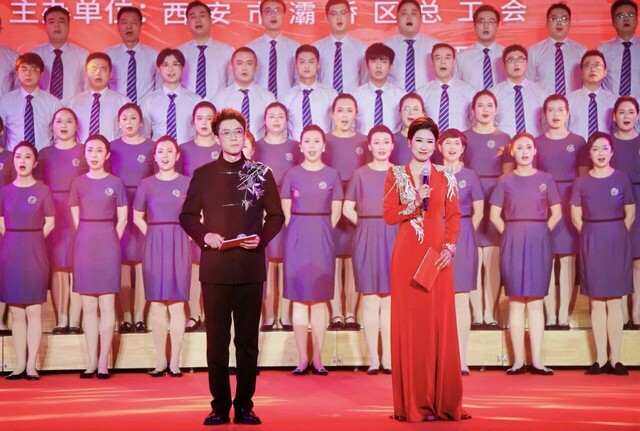 尾声《复兴征程》立足时代、眺望未来。在回顾延安精神新时代内涵的影像引导下,情景剧《闪光的青春》生动呈现了四位灞桥新时代劳动模范在平凡岗位上创新实干、无私奉献的感人事迹,展现了延安精神在当代的鲜活传承。随后,灞桥区职工合唱团以磅礴气势倾情演绎《我们的中国梦》《走向复兴》两首歌曲,歌声激越、催人奋进,唱响了全区职工紧跟党走、团结奋斗,共同奔赴民族复兴宏伟征程的坚定信念与时代豪情。