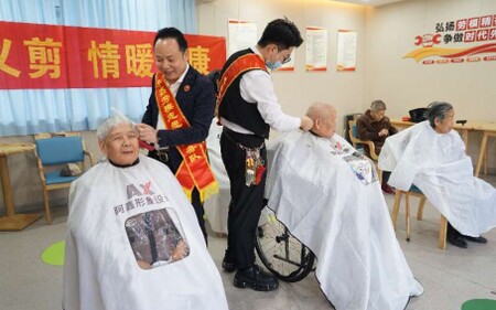 慰问期间,劳动模范李鑫带领志愿者团队开展了“爱心义剪”公益服务。志愿者们手法娴熟、耐心周到,为有需要的老人精心修剪头发,获得了长者们的一致称赞,一位长者由衷地说:“我们现在是享福了!”