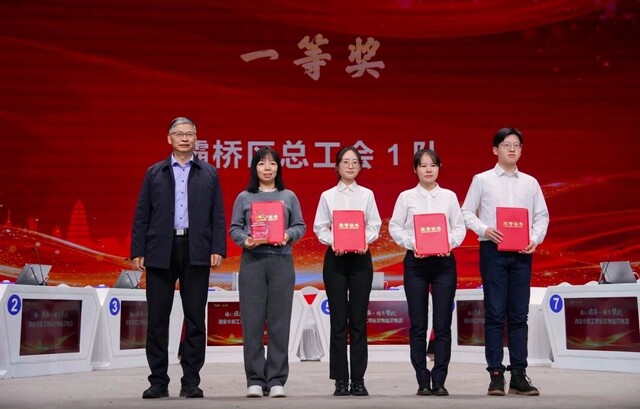 赛场上,灞桥区总工会1队参赛队员沉着冷静、从容应答,凭借扎实的专业积累精准破题,尽显工会工作者的过硬本领与昂扬风貌。每一次抢答,都是初心使命的践行;每一分分数累加,都是同心协力的见证。历经初赛、复赛、决赛的层层角逐,最终以全场最高分摘得竞赛桂冠,用实力彰显灞桥工会人的专业风采与硬核凝聚力。