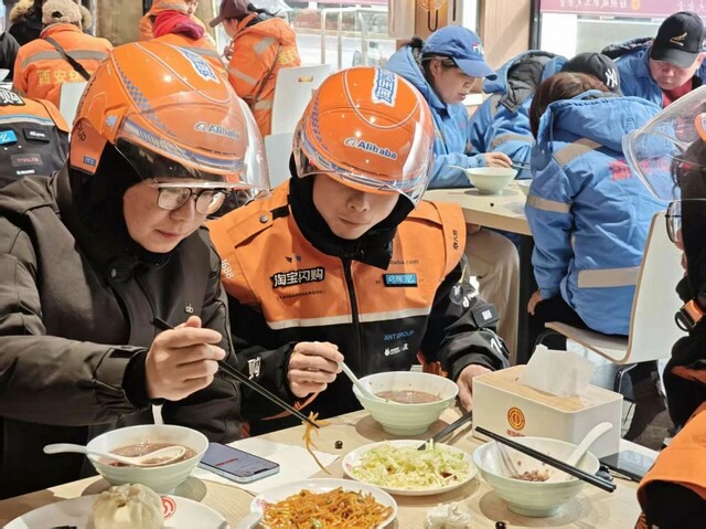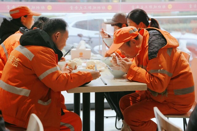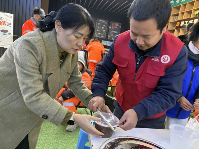 另一处活动现场,东大明宫工会驿站里同样暖意融融。来自红旗街道总工会的50余名环卫工人、商场信息员、城管执法队员、货车司机、保安等齐聚一堂,原本陌生的脸庞因一碗热粥变得亲切起来。工会志愿者端起盛满热粥的碗,逐一送到每位劳动者手中。“慢一点,小心烫”“不够喝咱们还有,管够!”一句句贴心的叮嘱,让驿站里的暖意愈发浓厚。