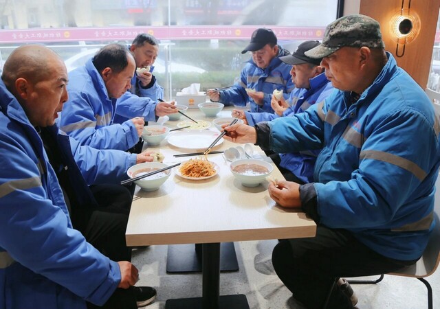 天刚破晓,纺织城职工大食堂里已升腾起袅袅热气,腊八粥香气弥漫在空气中。这里正举办免费品尝腊八粥活动,来自纺织城街道总工会和席王街道总工会的外卖员、绿化队员、环卫工人50余人围坐在一起。食堂师傅们,精心熬制,同时简化流程,快速取餐,让大家无需久候就能暖心果腹,不耽误工作节奏。