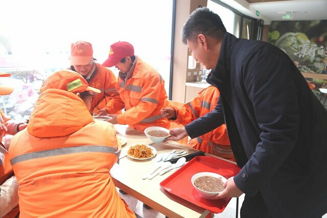 大家围坐在一起,小口品尝着热粥,畅谈着工作日常与新年期许。“今个腊八节,能喝上这么一碗热粥,心里比身上还暖!”一位环卫大姐捧着粥碗,脸上满是真诚的笑容,简单的话语道出了对这份关怀的珍视。