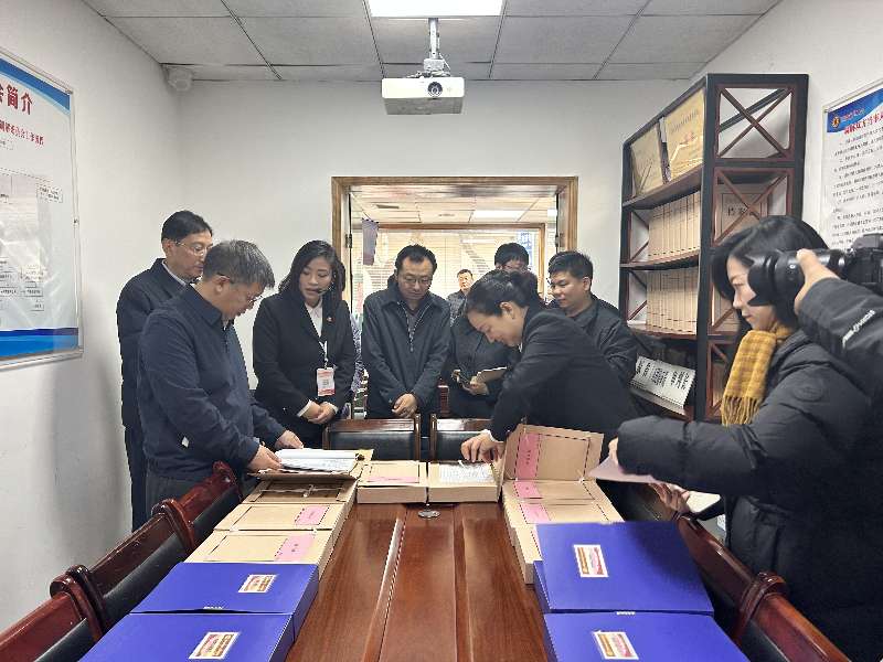 代表们现场翻阅工作台账、法律援助卷宗、仲裁卷宗等日常信访工作资料。